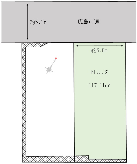 ■前面道路 約5.1m × 間口 約6.8m、駐車計画もしやすい整形地